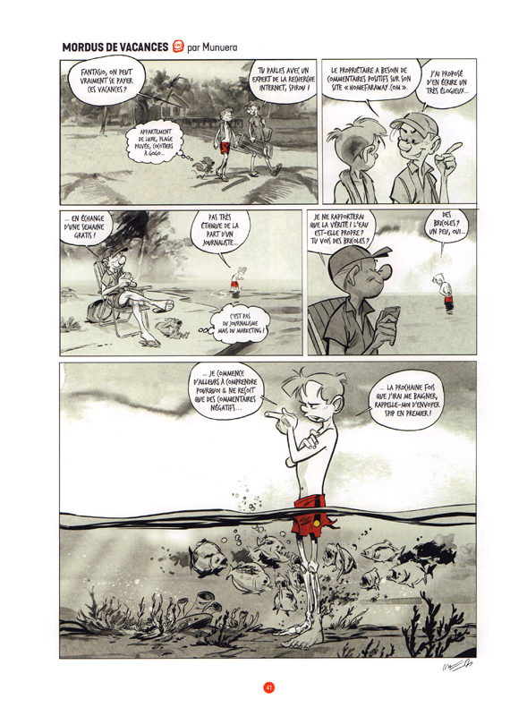Puis-je donner mon avis ? Je n'aime pas du tout cette nouvelle équipe... on dirait du Manga, c'est trop dynamique, trop de mouvements, pas assez d'humour, on a juste envie de suivre les personnages qui courent sans arrêt sans prendre le temps de s'arrêter... hors, tout le délice, avec Franquin, puis avec Tome et Janry, c'était parfois de prendre le temps de s'arrêter sur une case, une expression... ici, pas envie, ça va trop vite. En plus, comme dans le dernier Astérix, et comme dans de nombreuses BD actuelles, l'utilisation de procédés informatiques pour donner du détail en réduisant des images en arrière plan fausse la lecture, me dérange très fort. Jamais je ne pourrai croire qu'un dessinateur puisse dessiner aussi petit et ça me distrait de la lecture... Enfin, je vais vous confier un secret... en 1987, au festival de Bande dessinée de Durbuy, en Belgique, j'ai demandé à Franquin lequel de ses successeurs il préférait, lesquels il trouvait les plus proches de son univers à lui. Sans hésiter il m'a dit, "les actuels, Tome et Janry". Qu'aurait-il pensé de ceux-ci ? Donnez-moi votre avis... Quant à "Machine Qui rève..." moi j'avais adoré l'évolution... j'ai toujours pensé que "qui n'avance pas recule"... et j'aimais bien que Siprou et Fantasio vieillissent avec leur lectorat... pour le enfants, il restait "le Petit Spirou" beaucoup plus proche de ce que les enfants aiment en BD actuellement (je vois bien, les miens).