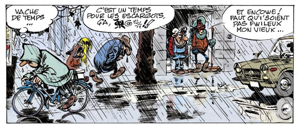 SylvainC a écrit:Si je ne m'abuse, il y a une planche de Gaston relativement tardive où Franquin a représenté des balayeurs, dont un noir. J'aimerais la regarder pour voir comment il caricaturait un homme noir à cette époque par rapport à l'époque Corne du rhinocéros. Quelqu'un saurait la situer ?