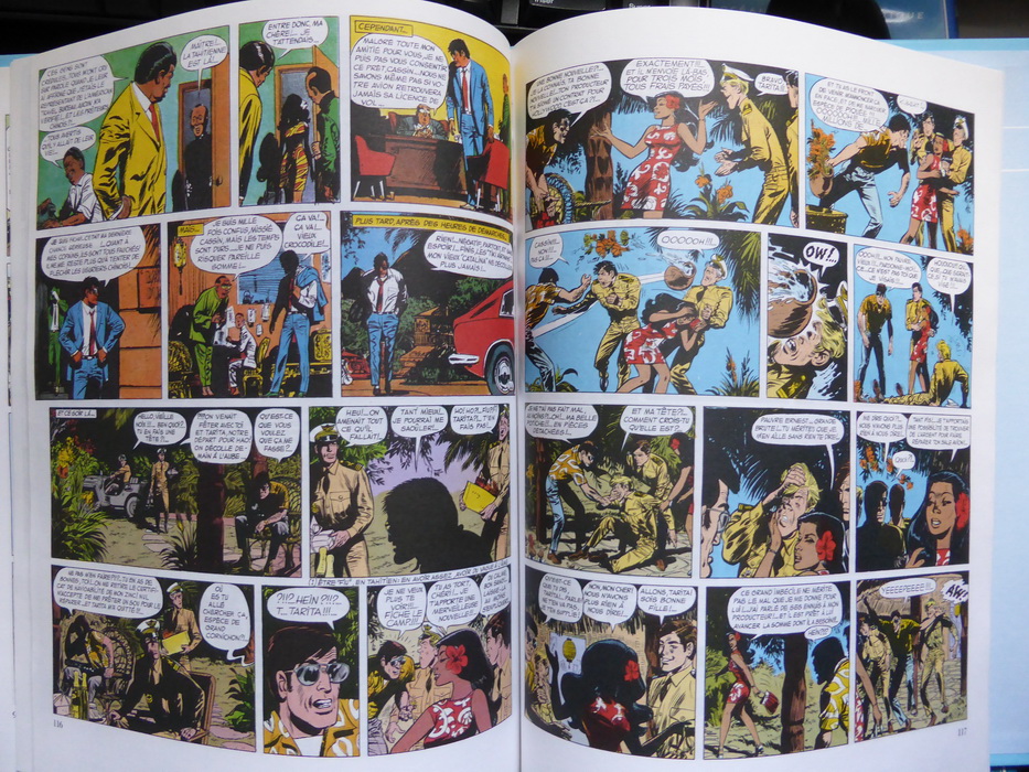 La réflexion de Laverdure au sujet d'une Tahitienne qui lui aurait sauvé la vie. D'abord, je ne retrouve pas ça, sinon une case du début où Laverdure dit qu'à cause de cette Tahitienne, une certaine Maéa, il a failli se tuer (page 7, soit planche 5, de l'album unitaire Menace sur Mururoa - et non Mururora comme tu l'écris...). Si on parle bien de la même chose, il faut savoir que l'album unitaire a pu être édité à condition de supprimer l'équivalent de 2 planches de l'histoire qui en comportait 48 à l'origine dans Pilote, soit deux de trop (il ne faut que 46 planches de BD dans un album ; j'ai déjà expliqué pourquoi moult fois sur ce forum). C'est la planche originale n°5 qui a sauté et la planche originale n°6 est devenue la 5 dans l'album. Je résume car le bidouillage est en fait plus subtil que ça...