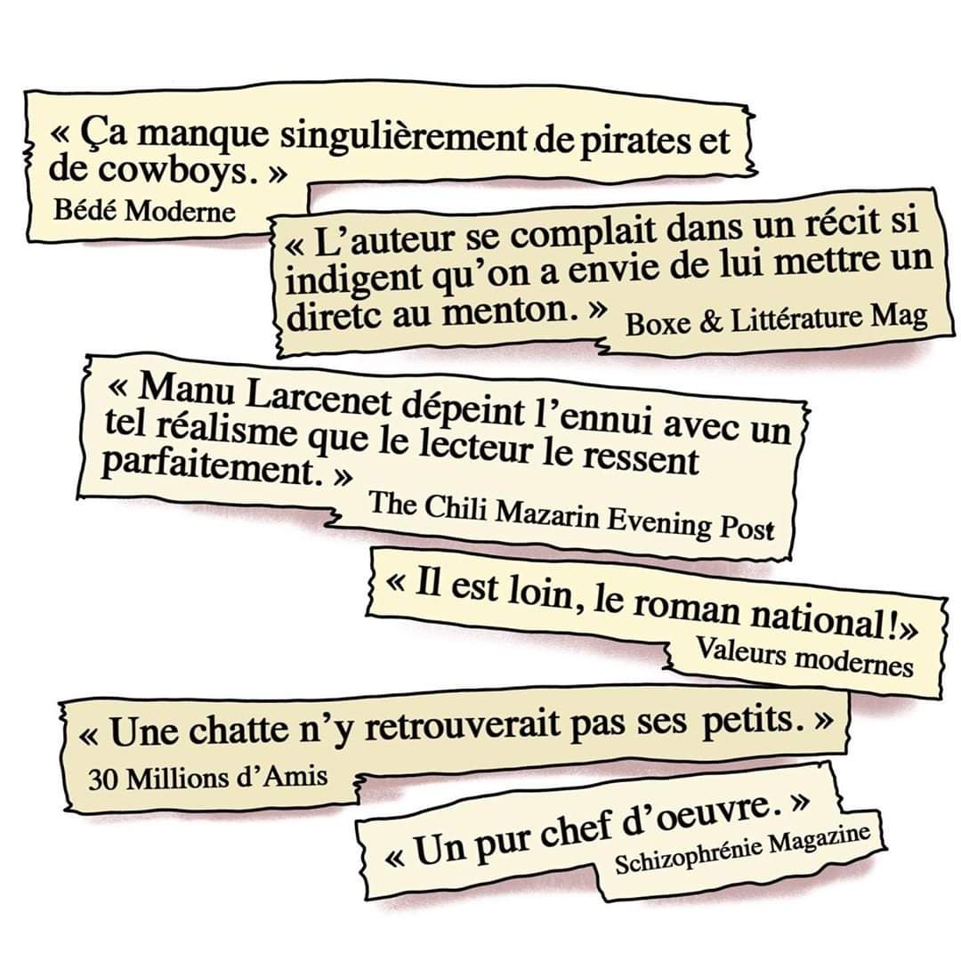 L'Ombre Jaune a écrit:Manu Larcenet, n'est-ce pas cet auteur dont on avait même plus le droit de parler ou d'écrire un post, par ici ? (Ou alors je confonds avec Marsault).