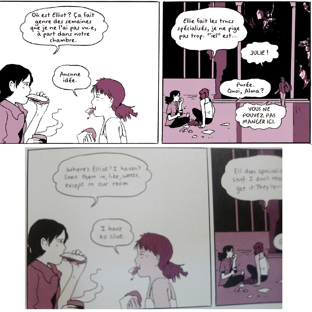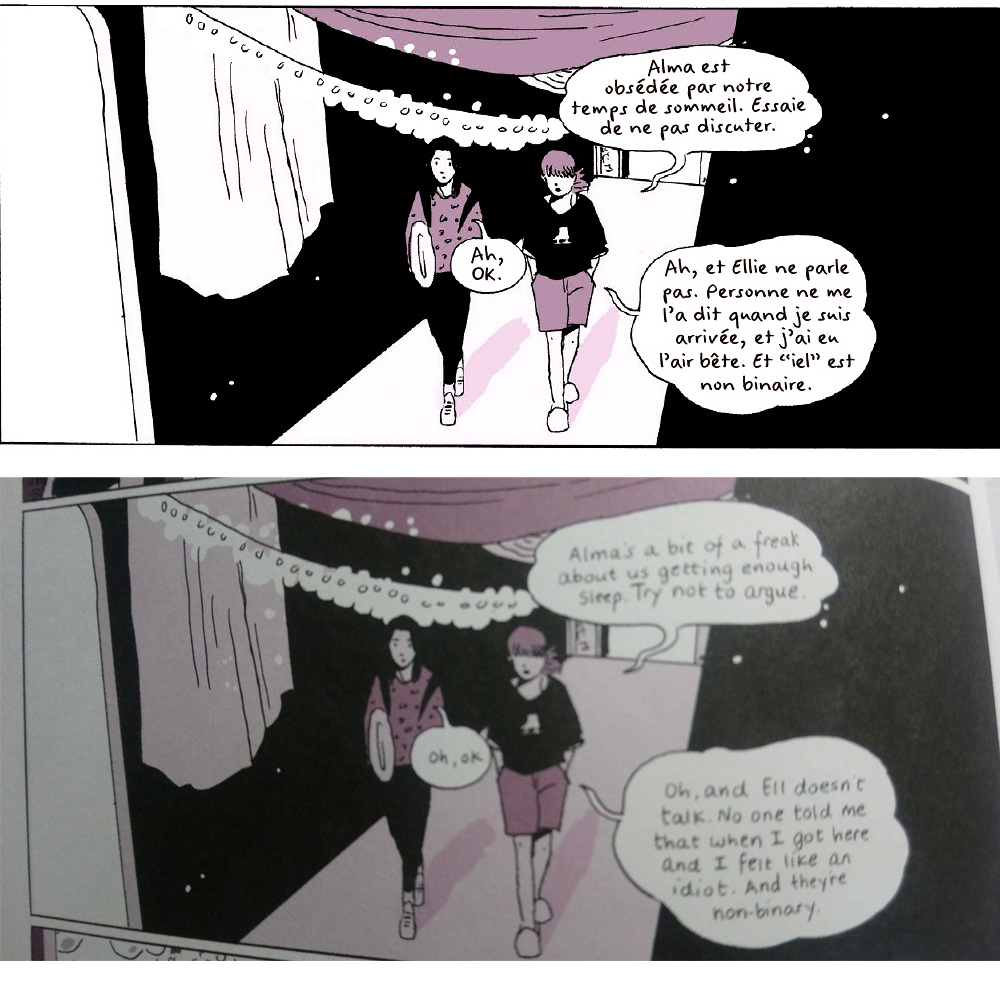 Par contre, pas d'écritue inclusive à la con ou de pronom "inclusive" "iel", dans la version US, l'auteur utilise toujours "they".