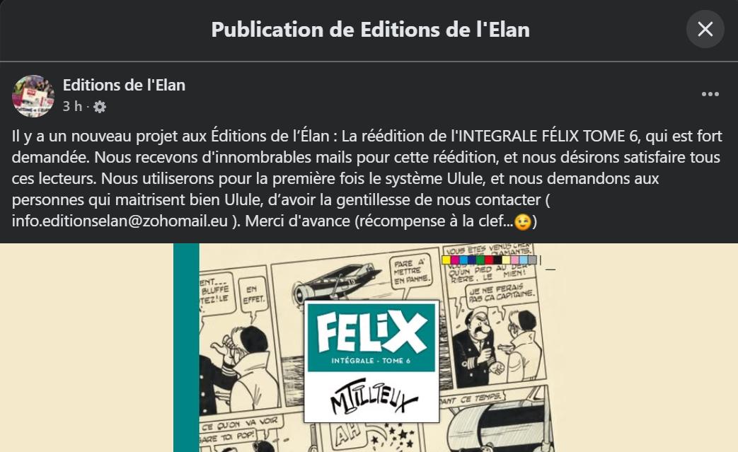 Le tome 6 est très recherché et fait donc l'objet d'une forte spéculation, mais probablement que la demande réelle ne dépasse pas quelques dizaines de personnes ... d'où la prudence de l'éditeur et le recours à Ulule.