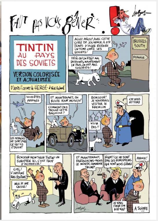 Je l'ai lue (j'avais déjà lu la version NB de 1999) et j'ai redécouvert des passages dont je ne me souvenais plus du tout, comme celui complètement surréaliste où Tintin en voiture est en panne de moteur puis comprend qu'en fait, c'est parce que son pneu est à plat (????).