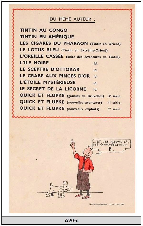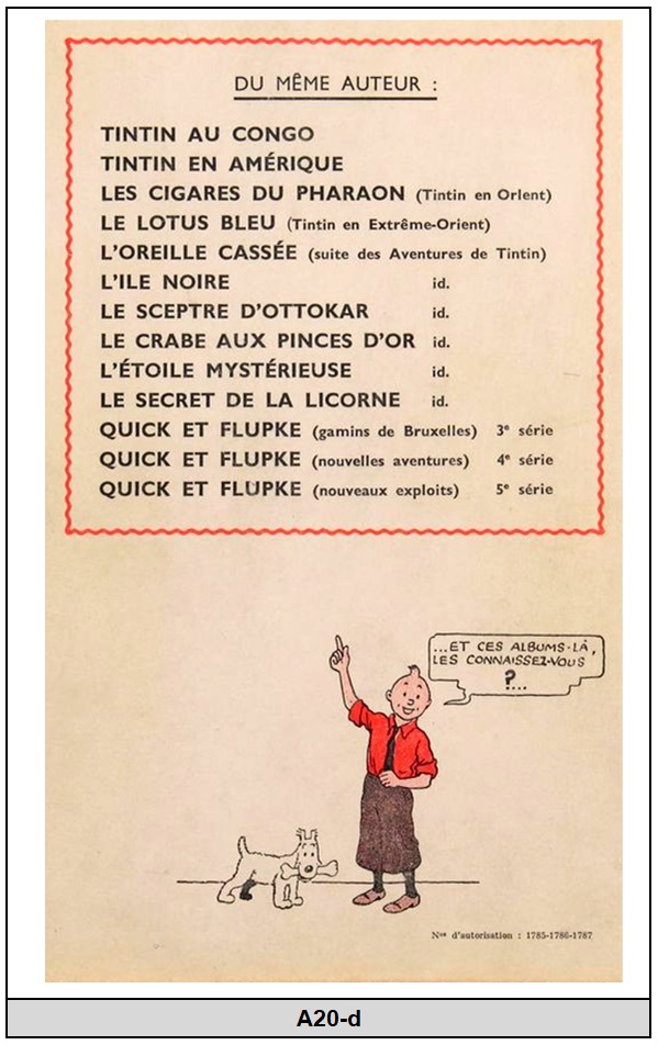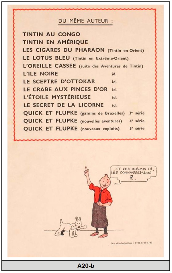 3) Vous mentionnez aussi des variantes de A21 pour l'édition "alternée" de 1945 de "l'Oreille cassé". Lesquelles? Avez vous des photos du 2e Plat?