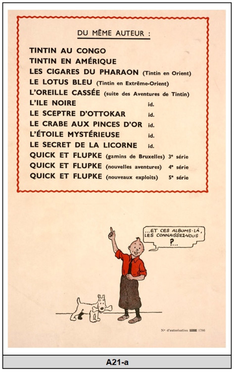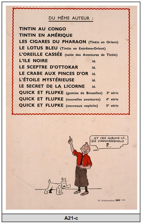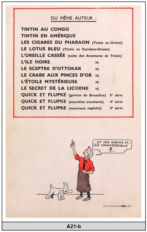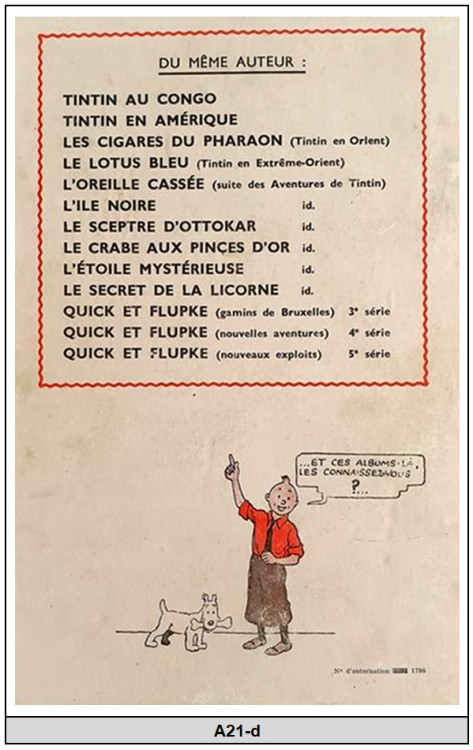 tarente a écrit:Petit détail amusant, même pour l’édition « alternée » de 1945 de « L’Oreille cassée » avec 30 ex connus on retrouve encore à minima 2 des 4 variantes pour le 4e plat A21.