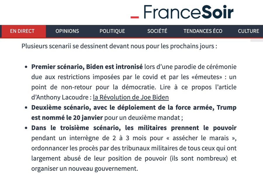 Ok les mecs étaient désorganisés, et peut-être même que leur intrusion dans le Capitol était spontanée (tu vois jusqu'où je peux aller dans ton sens), en revanche, ils y sont bien rentrés dans le but de perturber (d'empêcher ?) les grands électeurs de désigner le président élu.
