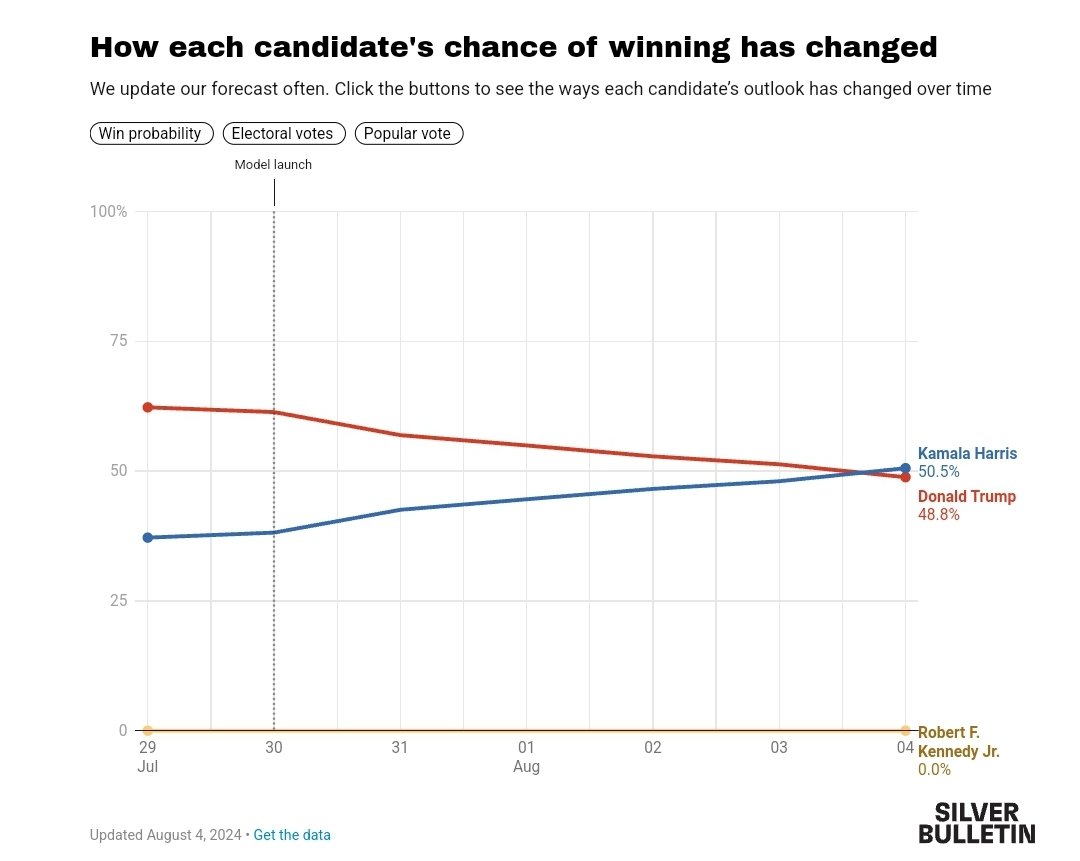 Comme c'est une élection à vote indirecte avec les grands électeurs, il s'agit d'un modèle qui agrège les sondages pour chaque Etat notamment les Swing States.