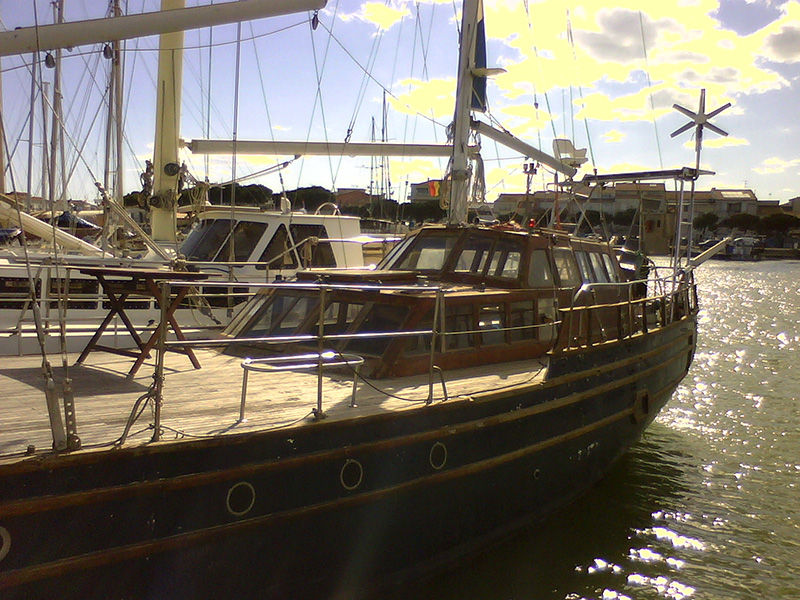 Un voilier "garé" en port de pêche bien sûr (le voilier qui te balade et te fait nager dans des criques, c'est pas ce prix-là