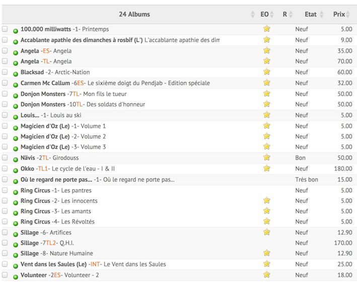 En raison de mon départ à l'étranger, je me sépare d'une partie de mes BD. La para-BD sera mise en vente dans un second temps (nombreux ex-libris, figurines "The Goon", montre "Sillage, etc.)