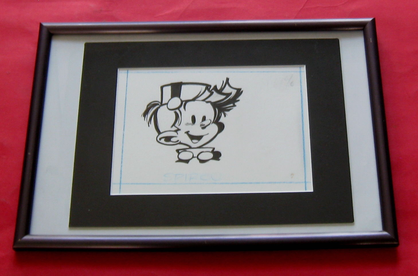 Sur le dessin que vous présentez à la vente, il y a un cadre au crayon bleu ainsi que le mot « Spirou ».