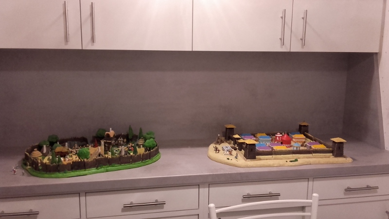 J'en profite pour vous présenter une photo d'ensemble avec le village et le camp Romain. Ainsi, vous voyez comment j'ai disposé ces 2 monstres !(Et gouffres financiers !)