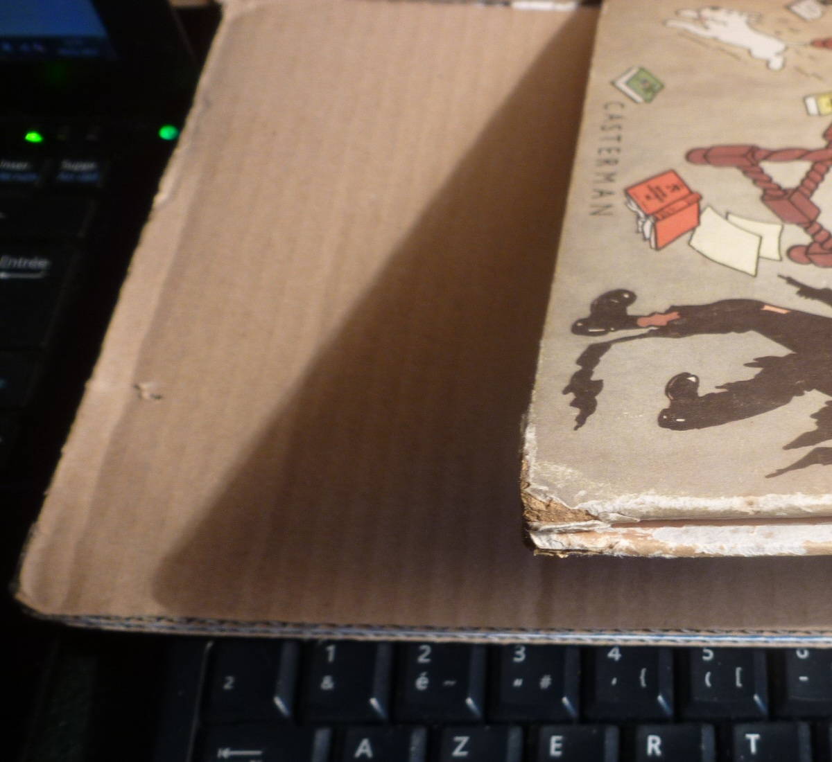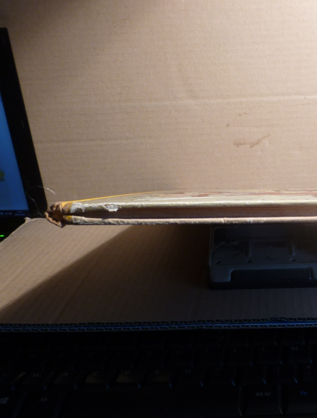Je n'ai pas eut entre les beaucoup d'exemplaire de cet album entre les mains et peut être est il particulier (mais modifier une technique de fabrication pour une édition, je n'y crois pas vraiment), mais aucun de mes exemplaires ne présente ce genre de renforts qui passent sous le cahier pour ressortir sur l'autre plat