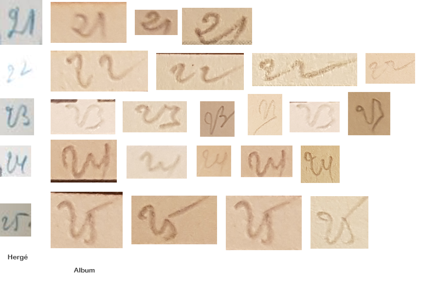 C'est dommage car il y a peu de texte annoté, ça rend la chose compliqué à comparer avec des lettres d'Hergé ou des commentaires dans des marges, dès fois j'ai l'impression que ça ressemble, dès fois moins...