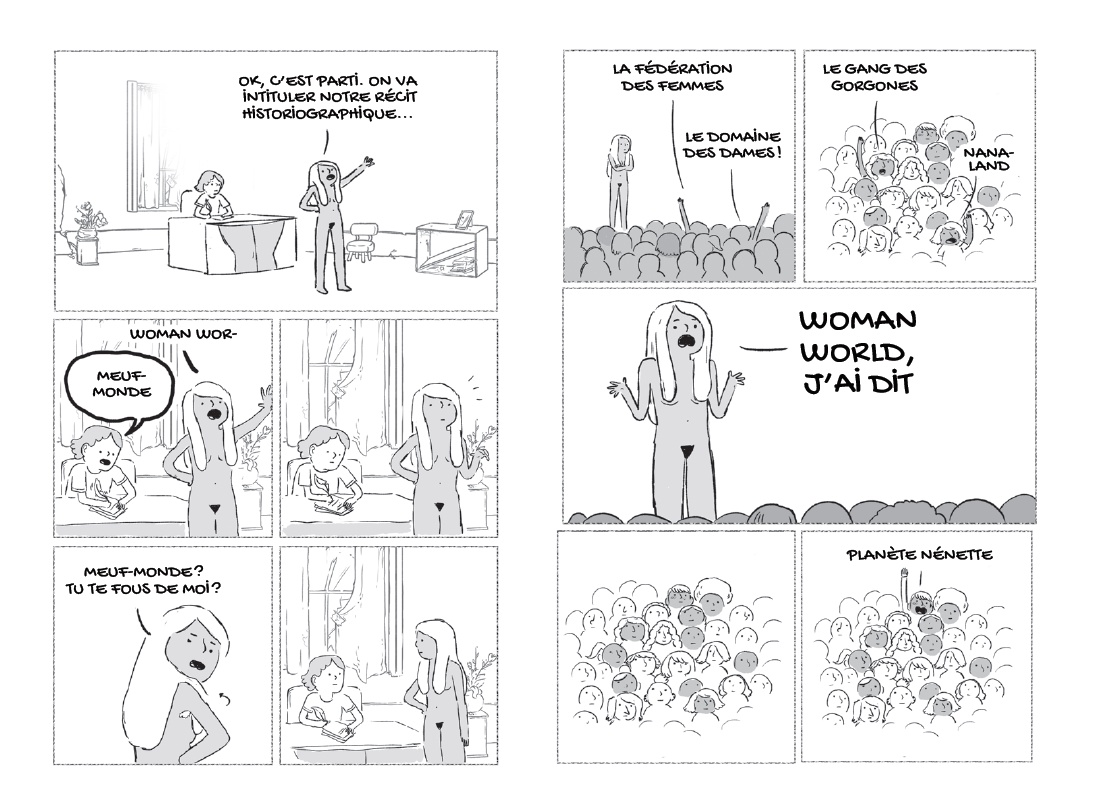 Woman World est une BD hilarante... mais pas seulement ! C’est aussi un conte philosophique audacieux qui manie brillamment et avec subtilité les concepts féministes, une métaphore de notre inertie face à l’urgence climatique… et un hommage à la pop culture du XXIe siècle.