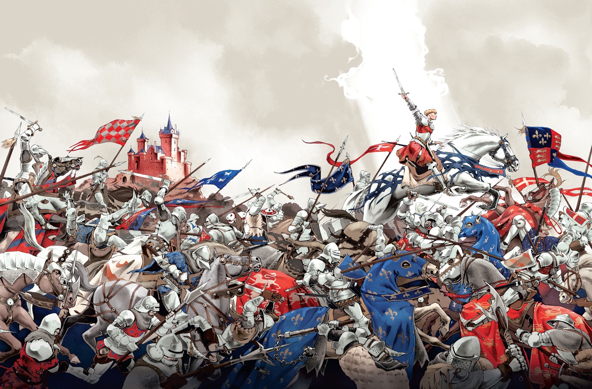 JD : Au cinéma, montrer "des milliers de combattants (qui) s'affrontent" coûtera des fortunes. En BD, trois lignes du scénariste et la magie du dessin suffisent pour avoir des milliers de combattants. Ceci dit, la guerre était beaucoup plus limitée en nombre d'acteurs et c’est l’artillerie qui a fait basculer la guerre de Cent Ans côté français.