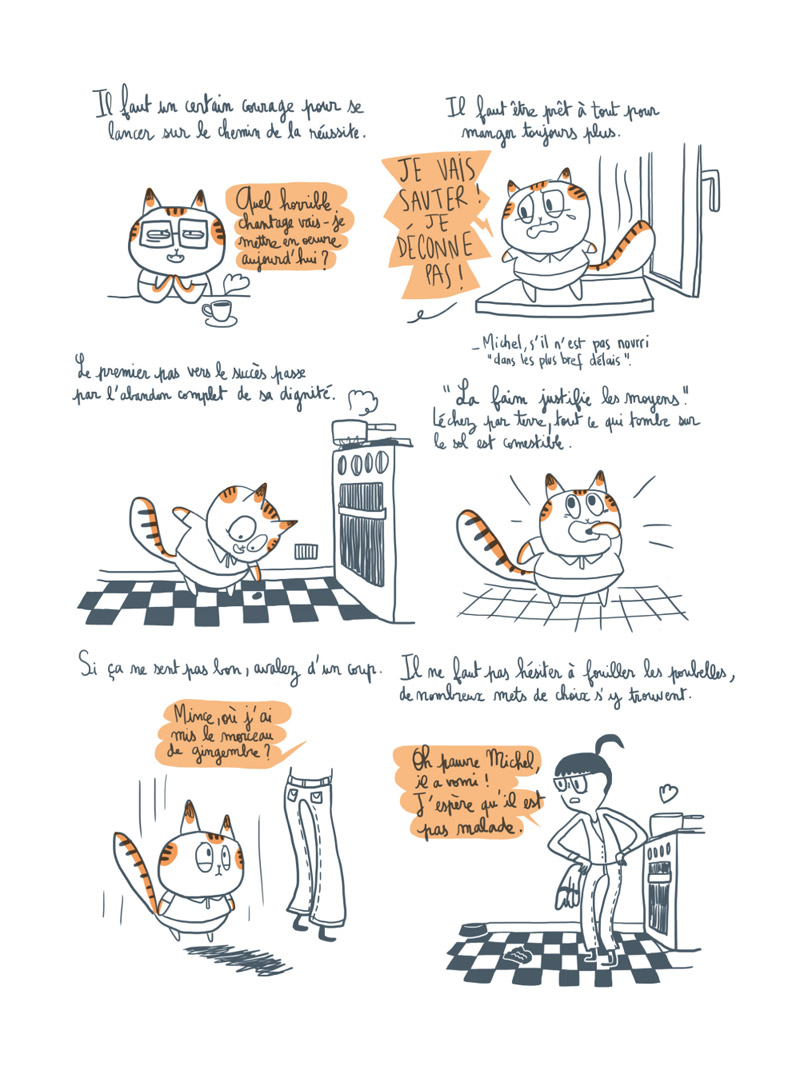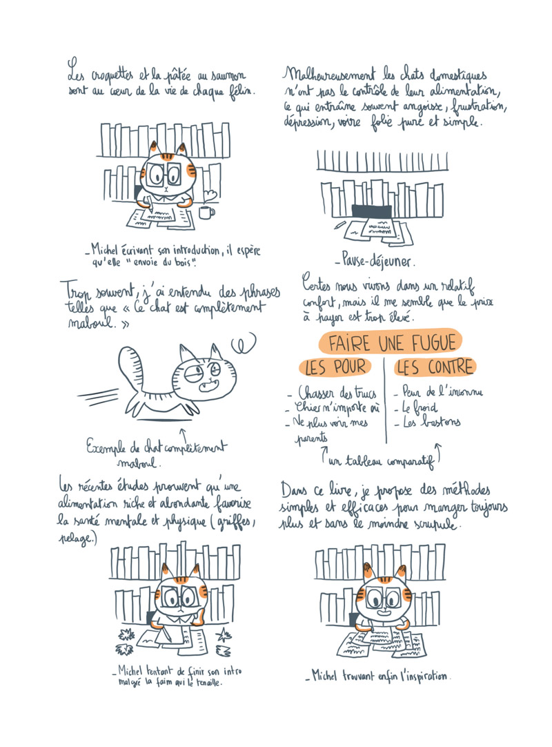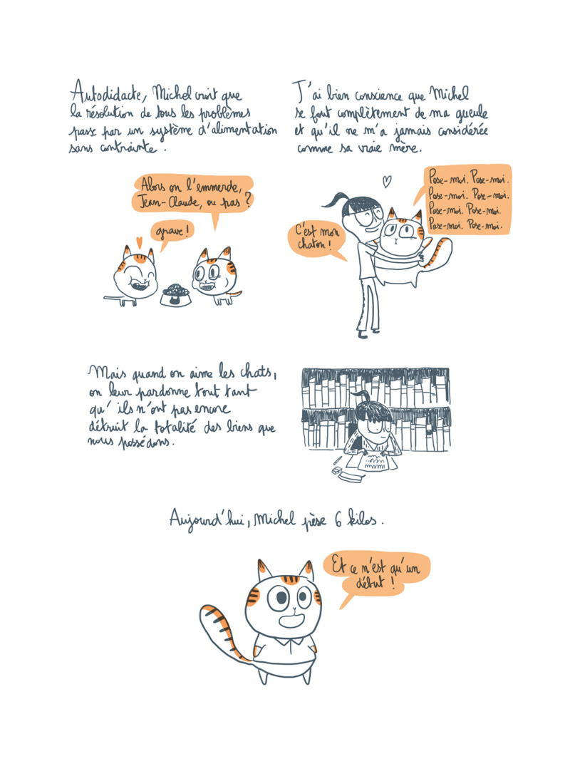 M ichel pèse 6 kilos. Chat roux de 2 ans originaire de Nantes, il propose des méthodes simples et efficaces pour manger toujours plus et sans le moindre scrupule. Des astuces pratiques pour un bien-être quotidien et un questionnement philosophique sur cette quête de l'impossible : comment manger en permanence et de préférence des mets délicieux ? Ne nous privons plus du bonheur de manger !
