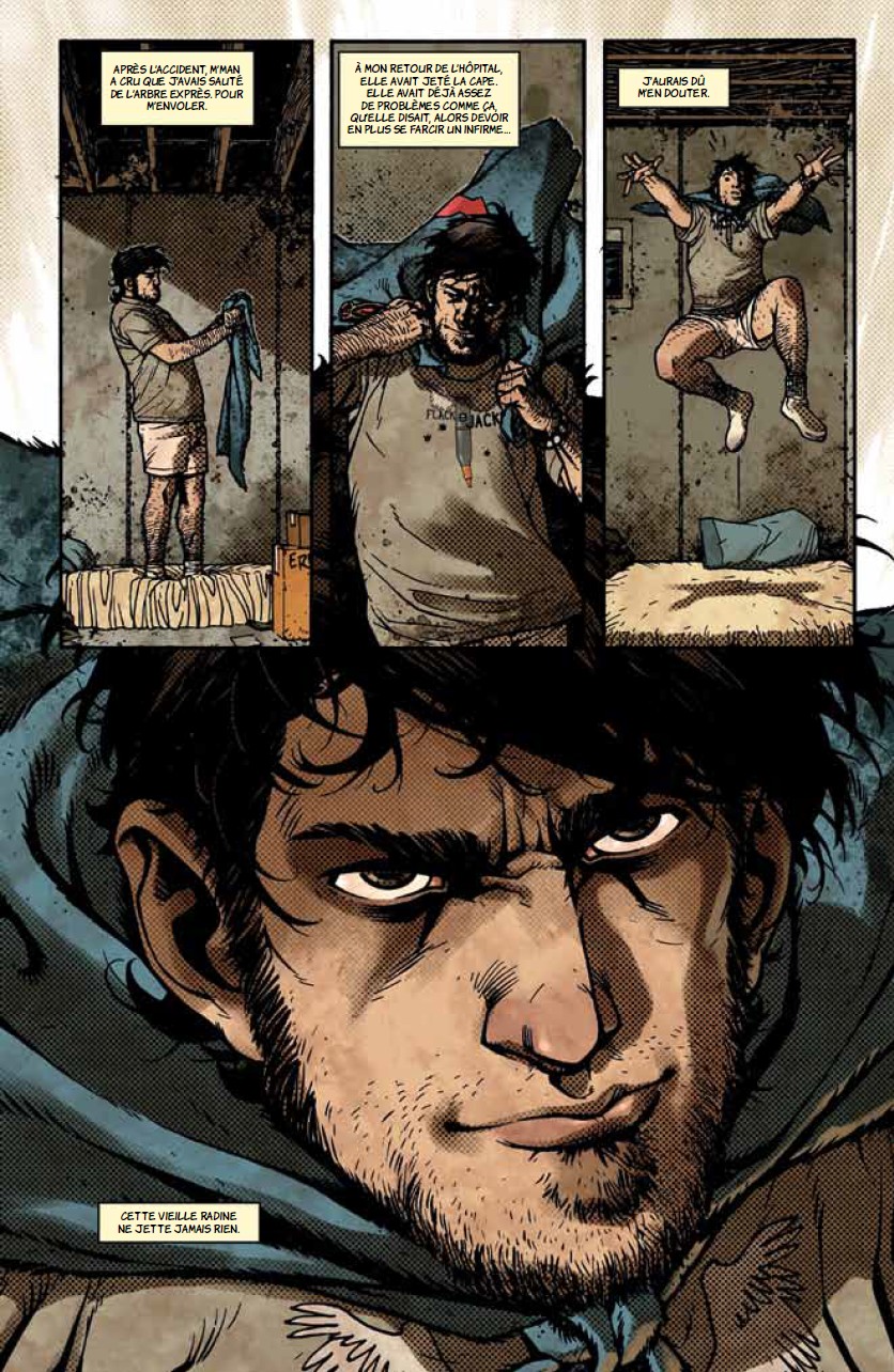 Eric est un homme brisé. Depuis l’accident tragique qui a bouleversé sa vie, à huit ans, et lui a arraché ses rêves de grandeur, rien n’a plus de sens. Si seulement il remettait la main sur la cape de son enfance, l’impossible serait à portée de main. Il pourrait s’envoler vers le ciel… et assouvir enfin ses désirs de vengeance.