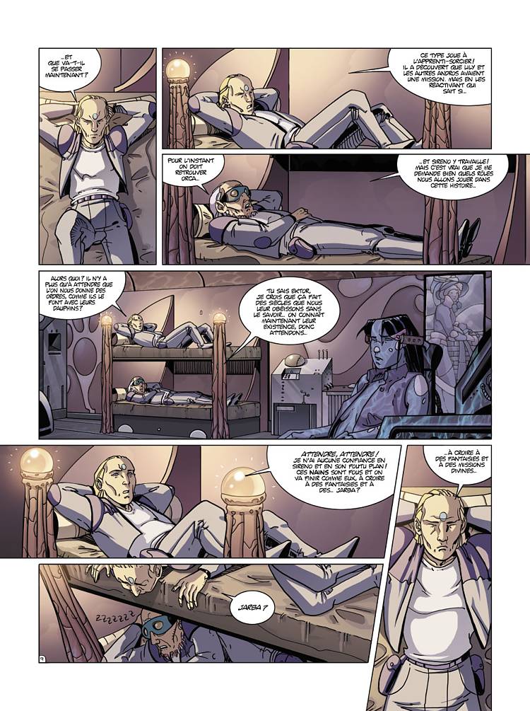 Q uittant Princip’île, Lilymande et son groupe plongent vers la capitale sous-marine: Neomû. Là, bouleversée par les nouvelles révélations de Sireno, elle décide de partir seule pour Termin’île afin de retrouver la trace d’Orca, sa soeur de métal, tandis qu’Hektor et Jarba découvrent stupéfaits le secret de l’humanité rescapée… Alors que la lune se rapproche inexorablement, Lilymande va devoir faire face à un danger d’une autre nature… la puissance enivrante qu’engendre la condition d’être artificiel.