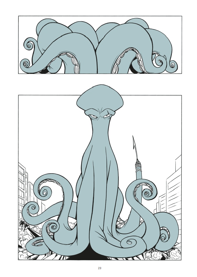 Tout le monde sait que les monstres préfèrent Tokyo. La mégalopole japonaise est la destination numéro un des lézards géants et affamés. Les Etats-Unis ont essuyés eux aussi les désagréments amoureux d’un singe gigantesque et colérique. Mais ça s’arrête là ... Cette fois, cependant, les monstres ont décidé de changer de menu en allant à Santos, une petite ville paisible, proche de São Paulo au Brésil. Mais chaque lieu a son héros ... il ne pouvait en être autrement. Alors que la population se désespère, un habitant reste calme. Il s’agit du vieux Pinô, propriétaire d’un bar, pêcheur et conteur renommé. Un être banal en apparence ... et pourtant !