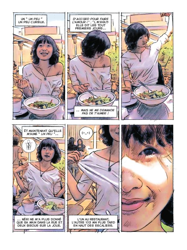 Neuf récits où l’auteur effeuille une fois encore la marguerite - je t’aime... beaucoup, passionnément, à la folie - et où ses partenaires s’offrent à l’unisson de références à François Truffaut, Christian Vincent, Cédric Klapisch ou Alain Resnais dans le cinéma intime de l’auteur de L’ÉPINARD DE YUKIKO.