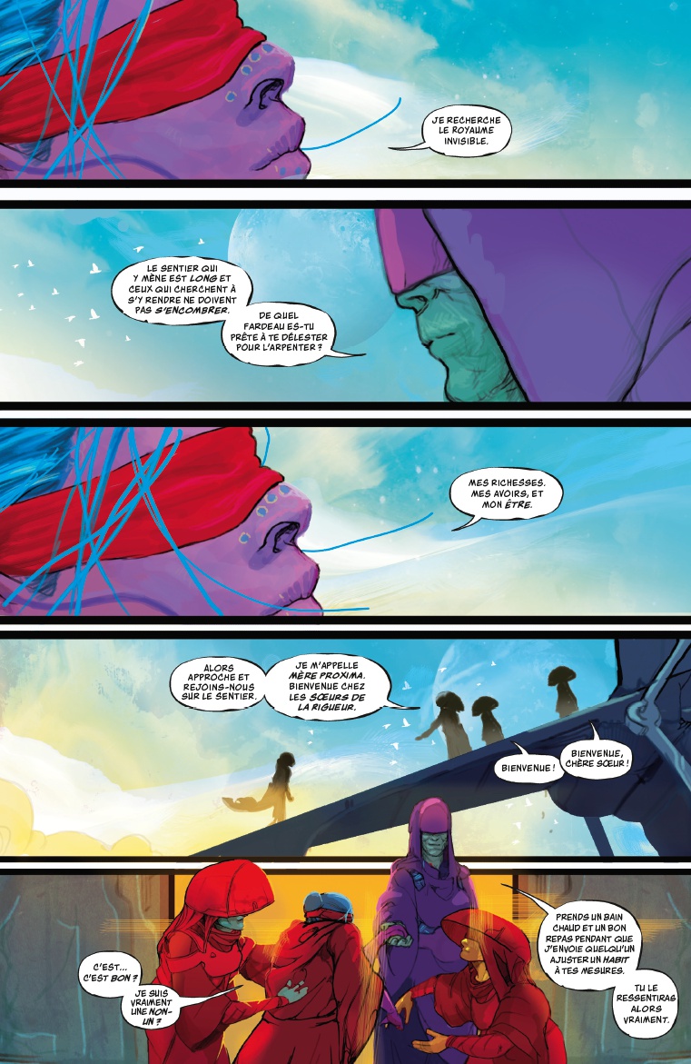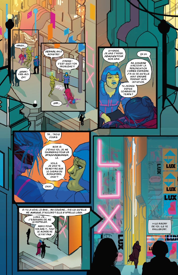 Vess est une jeune initiée de la Renonciation, dévorée par une passion brûlante et une foi inébranlable. Pilote de fret aguerrie au service de la méga-corporation Lux, Grix est son antithèse.