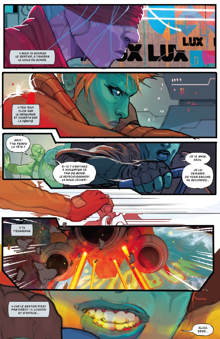Elle trace sa route de planète en planète, épaulée par un équipage téméraire. Tout chavire quand Vess et Grix tombent sur une information explosive... Cette découverte fait chanceler les fondations de leur univers. Réunies par le hasard, elles doivent faire un choix : suivre le sentier auquel elles étaient destinées, ou s'en forger un tout nouveau.