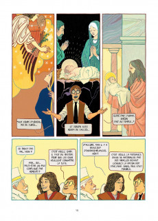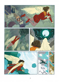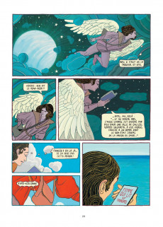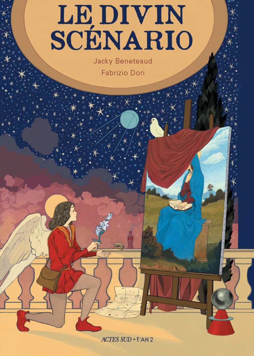 V ent de panique au Ciel ! Dieu vient de s’apercevoir qu’il a complètement oublié d’accomplir ce qu’il avait pourtant annoncé : avoir un fils qui puisse incarner sa puissance divine sur Terre. L’archange Gabriel se voit donc confier la mission de trouver la femme qui deviendra la mère du fils de Dieu. Pour ce faire, il ne dispose que d’une description plutôt sommaire (elle est « la femme qui lit ») et sans doute est-il un peu tendre – dans tous les sens du terme – pour mener à bien une affaire aussi délicate. Le thème de l’Annonciation, qui a inspiré tant de tableaux anciens, est ici détourné pour donner naissance à un récit drolatique, au cours duquel on croisera Shéhérazade, Dante Alighieri, la liseuse de Fragonard, Emma Bovary et Marilyn Monroe, pour ne citer que ces quelques figures. Le scénario multiplie les références culturelles, tant aux œuvres consacrées qu’à la Pop culture, célèbre la poésie et l’amour mais ne cède jamais à l’esprit de sérieux. En trois parties (« Le divin scénario », « Un casting d’enfer », « In nomine oscaribus »), les auteurs nous font voyager de l’Olympe jusqu’à Hollywood et nous conduisent de surprise en surprise, sans lésiner sur les anachronismes. Pour ce grand scénario, il fallait un grand dessinateur. Fabrizio Dori a non seulement su trouver la bonne distance, entre célébration et parodie, mais nous éblouit par la qualité de sa mise en scène, la sensualité de ses évocations et la puissance de sa palette.