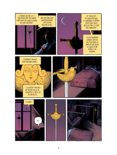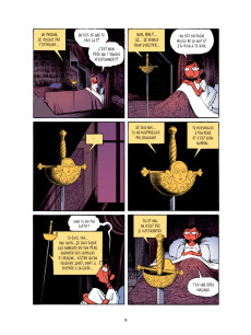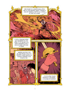 A près « Le Mystère du monde quantique » et « Sous Terre », Mathieu Burniat revient avec « Furieuse », une pure fiction scénarisée par Geoffroy Monde (« Poussière », « Comment réussir » et « De rien »).Le roi Arthur, celui de la légende ? Un vieil ivrogne décrépit qui passe ses journées vautré sur son trône. Sa gloire désormais bien lointaine, il la doit à l'épée magique que Merlin lui a forgée pour terrasser les hordes de démons venues envahir le royaume de Pendragon. Devenue témoin de sa déchéance, l'arme enchantée s'ennuie ferme tandis que la princesse Ysabelle fulmine car son débris de père l'a promise en mariage à l'ignoble petit baron de Cumbre.Toutes deux bien décidées à se trouver un meilleur destin, Ysa et l'épée s'allient pour fuir le château et partir à la recherche de Merlin et de Maxine, la grande soeur disparue.Mais le vaste monde peut se montrer bien cruel pour une princesse qui n'a connu que la vie de palais. Et les intentions de l'épée sont peut-être moins nobles qu'il n'y paraît...