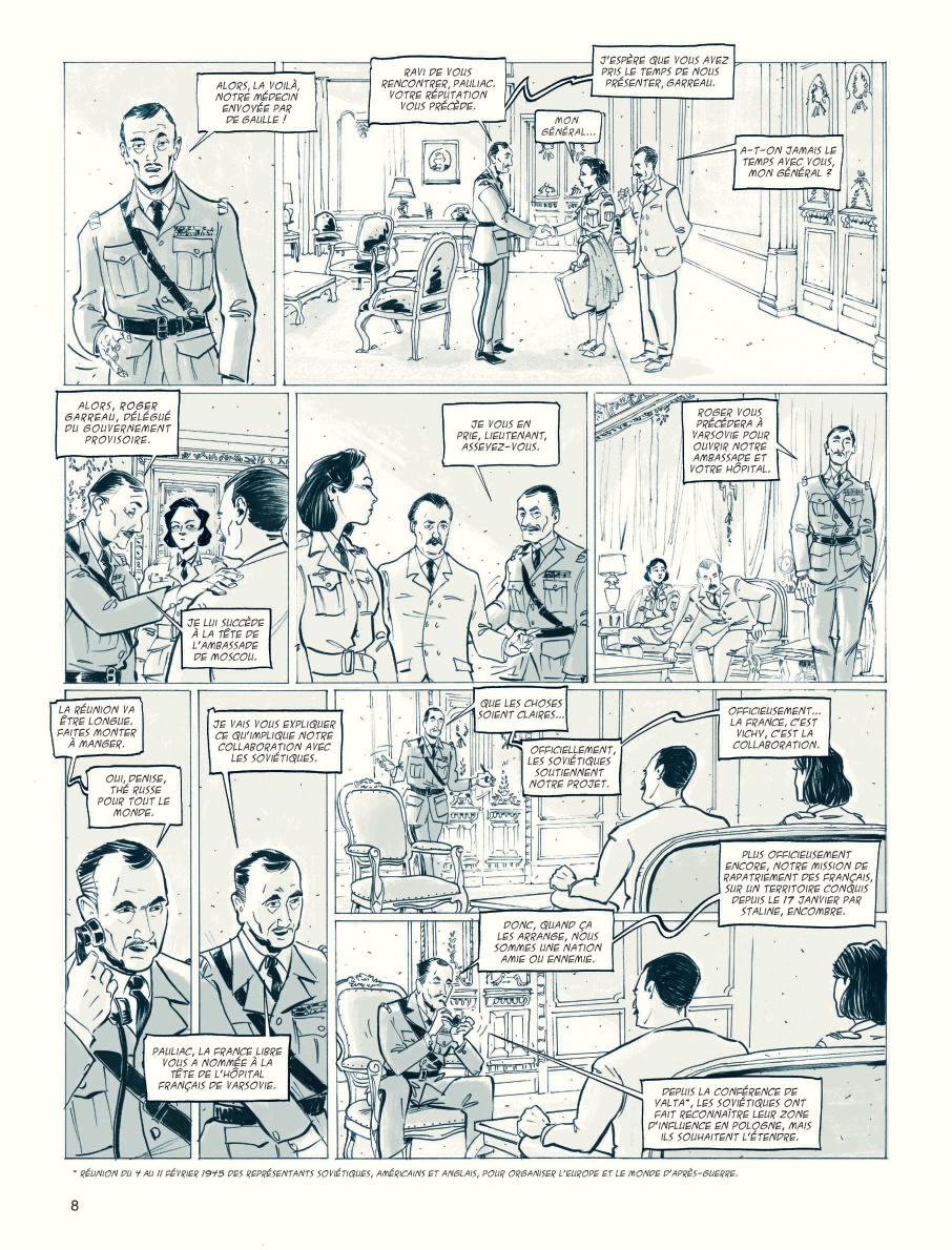 adeleine Pauliac a seulement 31 ans quand, médecin pédiatre à l'Hôpital des enfants malades à Paris, elle s'engage dans la Résistance pendant la Seconde Guerre mondiale et participe à la libération de Paris. Quelques mois plus tard, en avril 1945, alors que la fin du conflit sonne enfin, débute pour elle un autre combat. Engagée dans l'armée en tant que médecin-lieutenant des Forces françaises de l'intérieur (FFI), elle est envoyée à Moscou puis à Varsovie par le général de Gaulle avec un groupe d'infirmières-ambulancières pour assurer le rapatriement sanitaire des Français, libérés par l'Armée Rouge, qui errent en Pologne et de ceux qui sont encore retenus prisonniers par Staline.