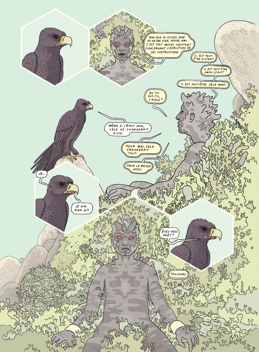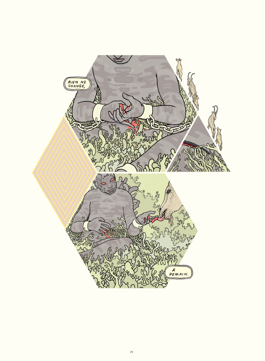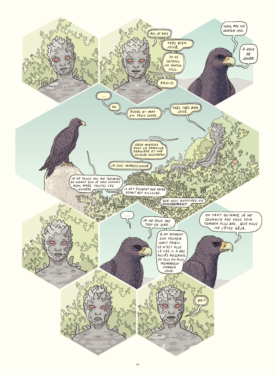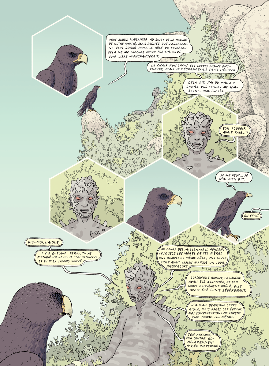 Mélangeant science-fiction, mythologie et géopolitique, Tongues peut être considéré comme le magnum opus d’Anders Nilsen, un récit d’une ampleur rare et d’une ambition folle. Sur le plan graphique, l’auteur américain s’est surpassé et sa narration, au sein de laquelle s’entremêlent personnages, lieux et époques, est portée par un dessin à la fois maîtrisé et explosif, produisant des pages d’une beauté folle et subjuguante.