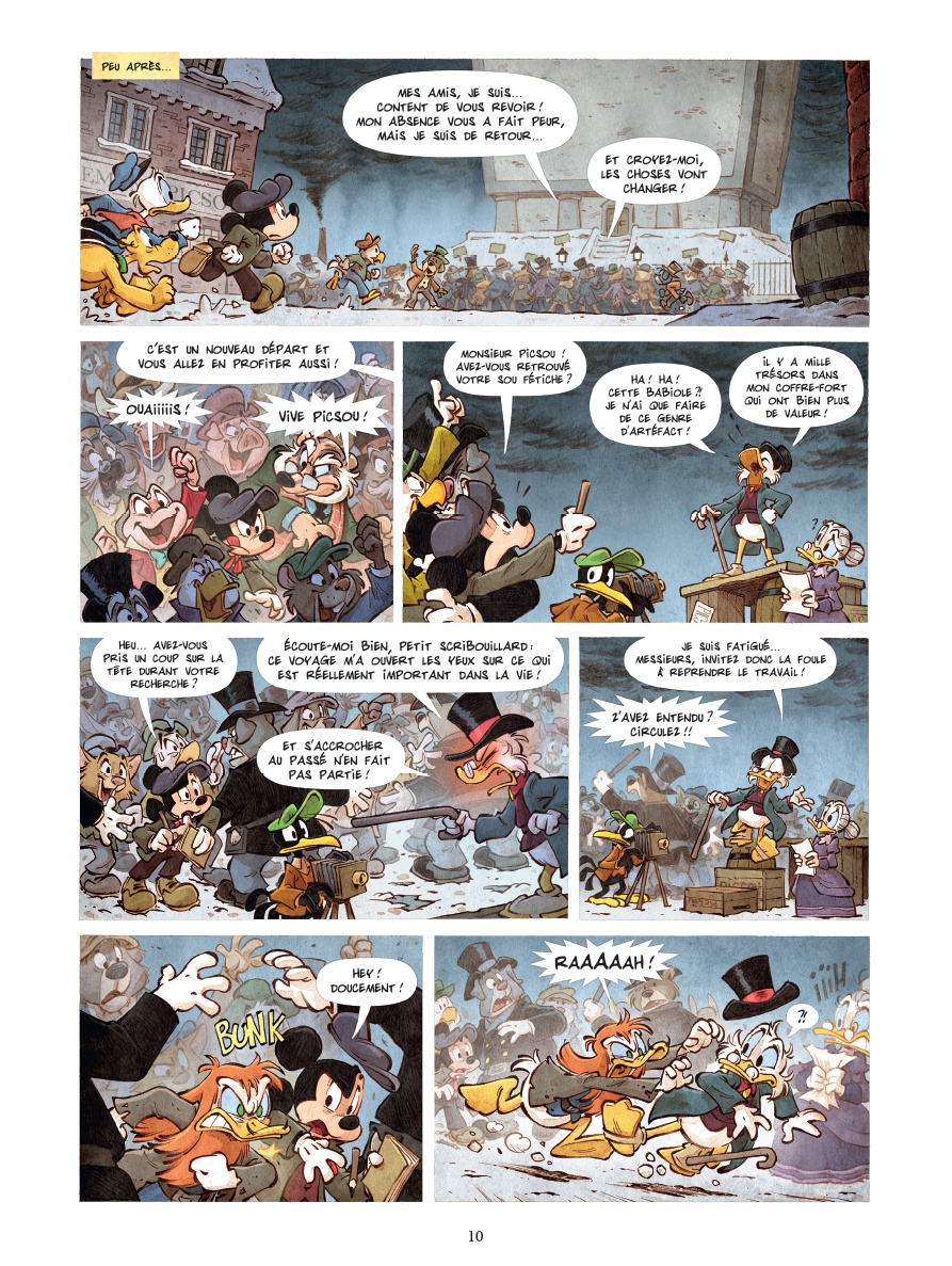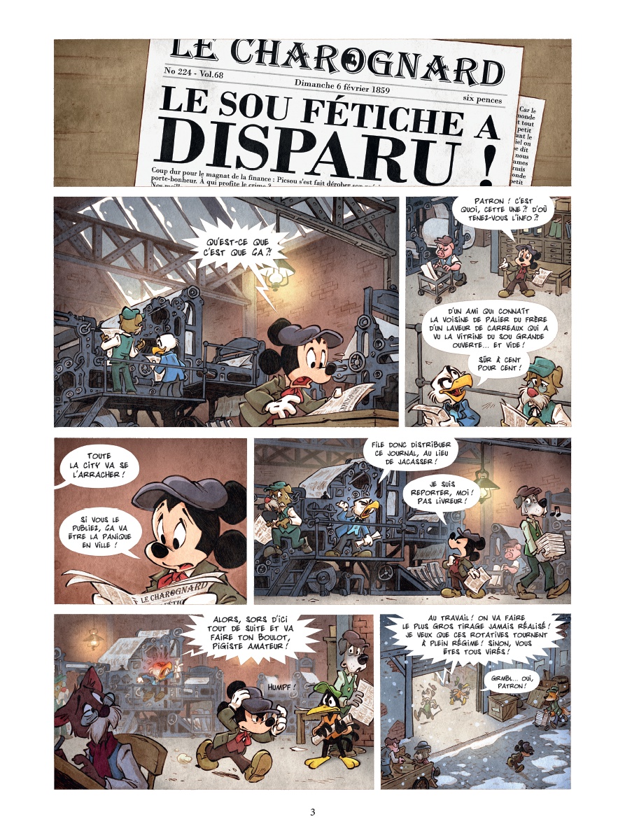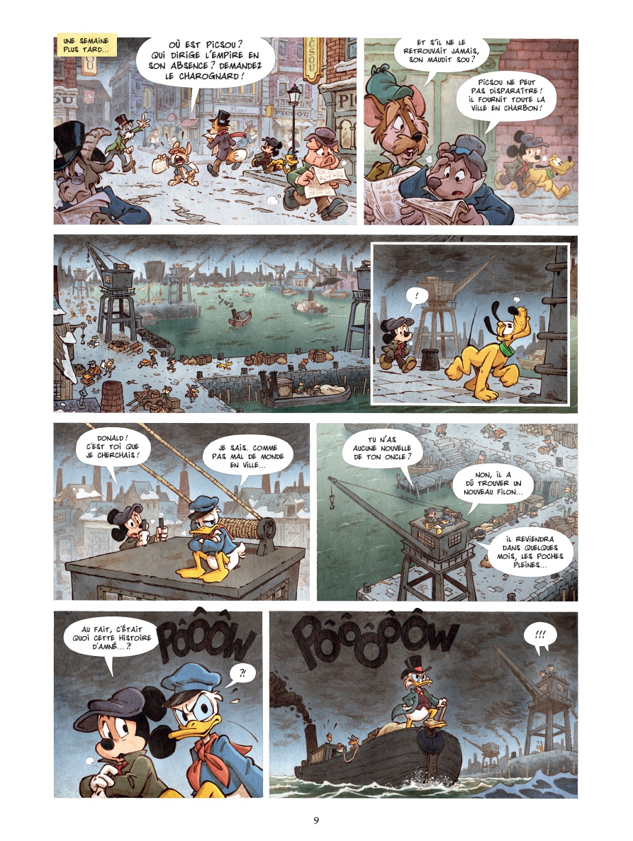 Londres, 1850. Quand le légendaire sou-fétiche de Picsou disparaît de son célèbre coffre, c’est toute la ville qui risque de s’enfoncer dans le chaos. Les usines ferment une à une et Picsou lui-même semble avoir perdu la tête et dilapide sa fortune ! Mickey, jeune reporter intrépide accompagné de son fidèle Pluto, ne peut rester sans réagir. Pour tenter de retrouver le sou-fétiche et rétablir l’ordre en ville, ils se lancent dans une enquête haletante entre rumeurs de complot et pirates surgis du passé. Mais ils ne seront pas les seuls à affronter tous les dangers : le hasard met sur leur route de nouveaux compagnons de fortune. D’abord Dingo, qui a une mission à accomplir de l’autre côté de l’océan. Puis Donald, qui veut fuir l’héritage de son oncle. Et il se pourrait bien que ces deux compagnons soient détenteurs d’un secret lié à toute cette affaire. Au cœur des docks embrumés, des clubs de milliardaires et des tavernes des Açores, Mickey et ses compagnons de fortune ne sont pas au bout de leurs surprises. Ils vont devoir affronter des ennemis invisibles et des secrets enfouis s’ils veulent rétablir l’ordre en ville. Et si le destin de Picsou dépendait d’un simple sou ? Trahisons et révélations, une course contre la montre s’engage pour sauver Picsou… et peut-être le monde.