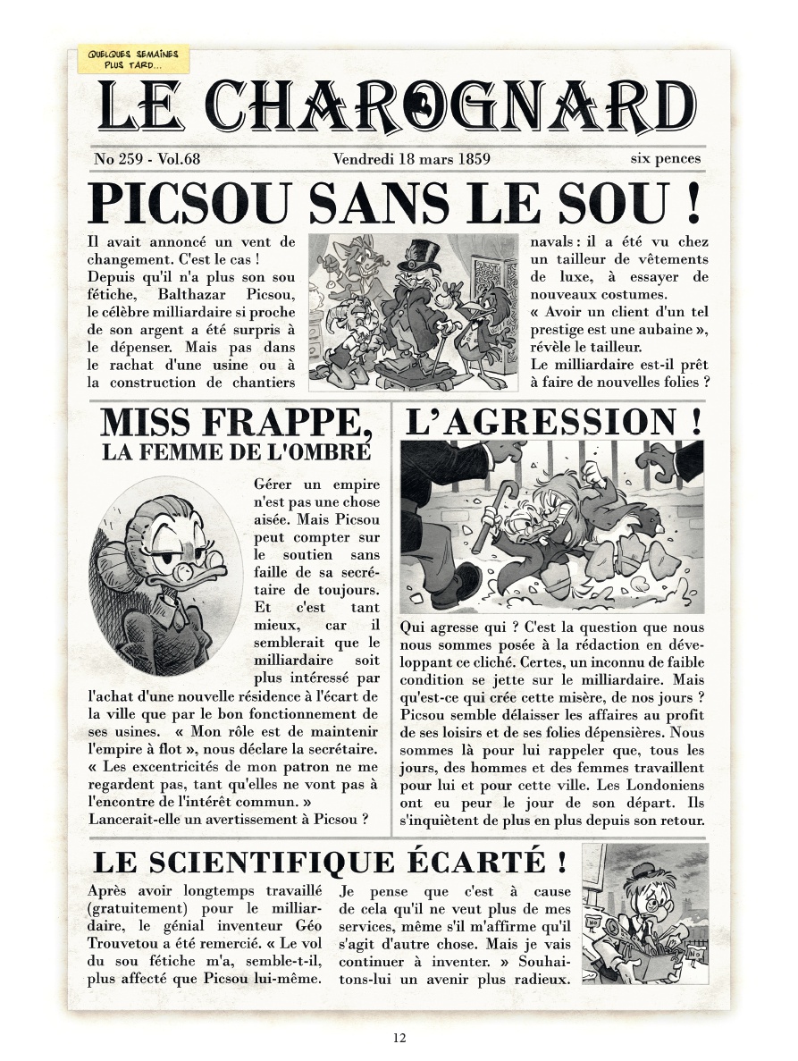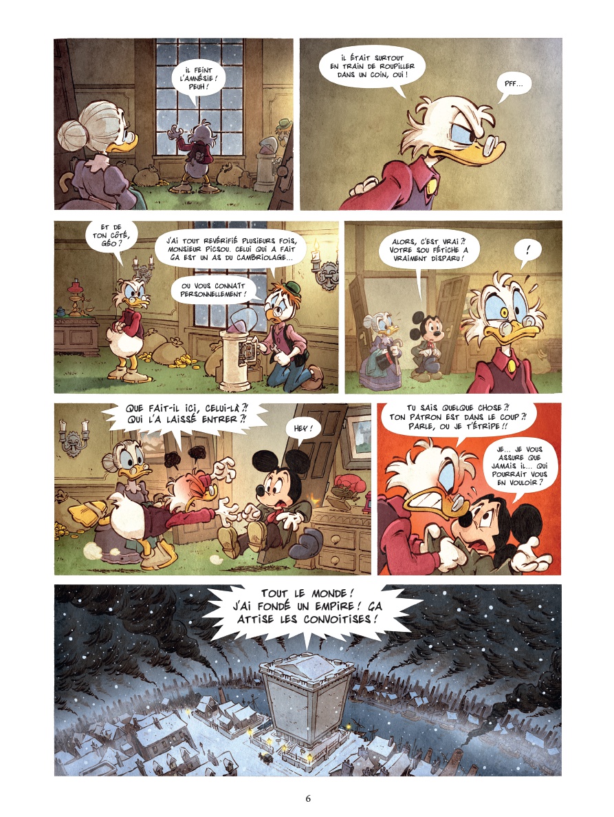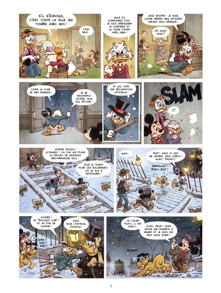 Londres, 1850. Quand le légendaire sou-fétiche de Picsou disparaît de son célèbre coffre, c’est toute la ville qui risque de s’enfoncer dans le chaos. Les usines ferment une à une et Picsou lui-même semble avoir perdu la tête et dilapide sa fortune ! Mickey, jeune reporter intrépide accompagné de son fidèle Pluto, ne peut rester sans réagir. Pour tenter de retrouver le sou-fétiche et rétablir l’ordre en ville, ils se lancent dans une enquête haletante entre rumeurs de complot et pirates surgis du passé. Mais ils ne seront pas les seuls à affronter tous les dangers : le hasard met sur leur route de nouveaux compagnons de fortune. D’abord Dingo, qui a une mission à accomplir de l’autre côté de l’océan. Puis Donald, qui veut fuir l’héritage de son oncle. Et il se pourrait bien que ces deux compagnons soient détenteurs d’un secret lié à toute cette affaire. Au cœur des docks embrumés, des clubs de milliardaires et des tavernes des Açores, Mickey et ses compagnons de fortune ne sont pas au bout de leurs surprises. Ils vont devoir affronter des ennemis invisibles et des secrets enfouis s’ils veulent rétablir l’ordre en ville. Et si le destin de Picsou dépendait d’un simple sou ? Trahisons et révélations, une course contre la montre s’engage pour sauver Picsou… et peut-être le monde.