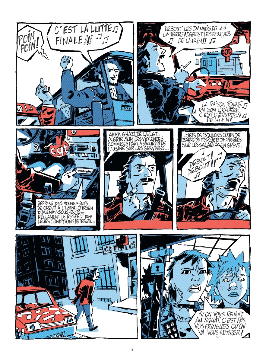 Lionel Chouin nous livre une fiction saisissante dans une France en pleine mutation. Entre montée des extrêmes, solidarité ouvrière et mouvements antiracistes, son dessin tranchant dépeint la réalité sociale et nous emmène des quartiers sensibles aux meetings politiques pour dresser le portrait d'une époque avec ses luttes et ses failles. Les influences musicales se mêlent à l'esprit de révolte dans un album authentique et poignant.