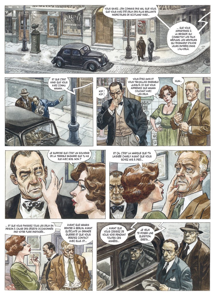 B erlin, 1936. Bob et Charly, anciens inspecteurs de Scotland Yard, spécialisés dans la traque aux charlatans et faux spirits, débarquent en Allemagne. Tous deux, amis autrefois, se retrouvent au même lieu de rendez-vous. Qui est donc cette jeune Allemande qui les a contactés ? Troublés, ils sont loin d'imaginer qu'ils viennent de prendre part à la plus effroyable guerre des magiciens jamais connue...