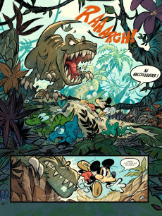 M ickey est fasciné par la machine à explorer le temps de deux savants. Se cognant la tête sur l'engin, il se retrouve propulsé au temps des cavernes où il tente d'échapper à un T-Rex. Par chance, à chaque coup de tête, il change d'époque. Ainsi atterrit-il à Waterloo, sur un champ de bataille puis en 1492, en Amérique. La série